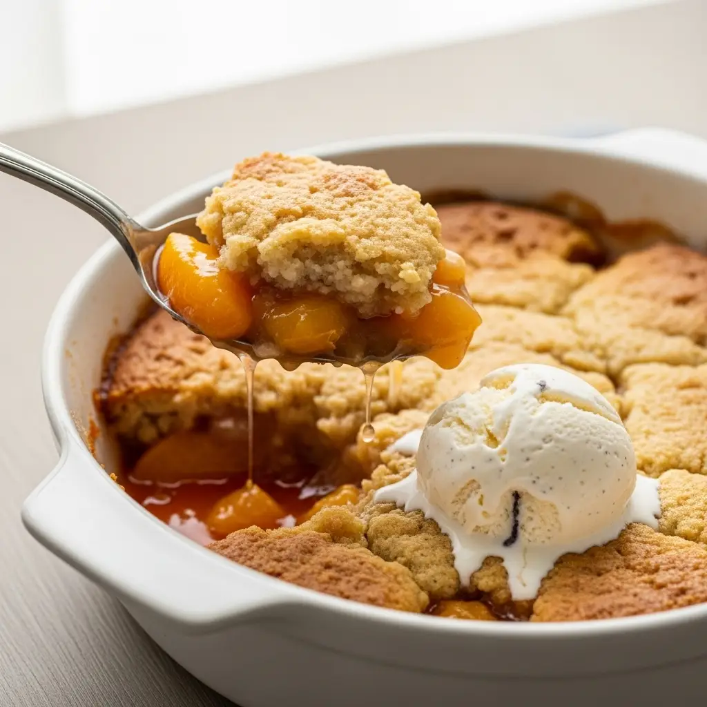 Brown Sugar Peach Cobbler with a Buttery Biscuit Topping