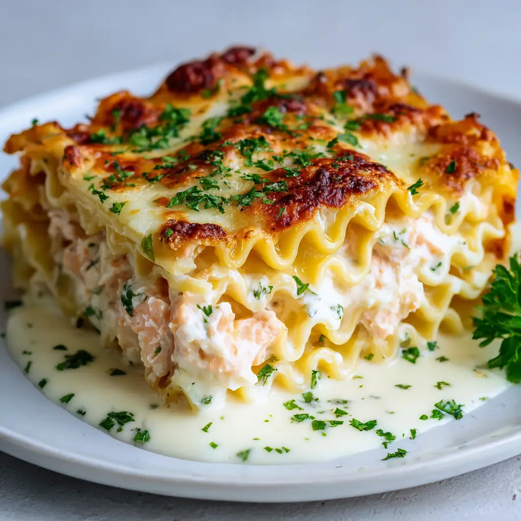Every bite of this decadent masterpiece offers an unforgettable textural contrast. You will slice through thick, wavy lasagna noodles, encountering tender chunks of cooked pink salmon enveloped in an incredibly thick white bechamel sauce. The melted, stringy mozzarella cheese creates a mouthwatering pull with every forkful.