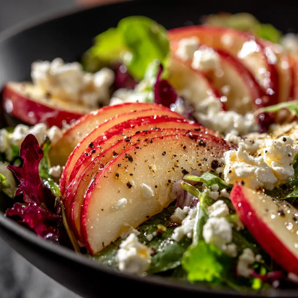 • Feta Cheese: The salty, briny flavor of crumbled feta cheese is the perfect savory counterpoint to the sweet apples.