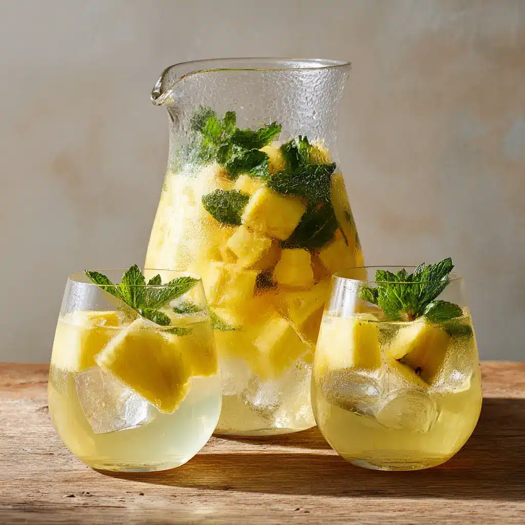Crafting the perfect pitcher requires more than just tossing fruit into wine; it is about balancing acidity, sweetness, and the botanical notes of fresh herbs. By suspending freshly cut, bright yellow pineapple chunks and very thin translucent lemon wheels throughout the liquid, you create a drink that is as beautiful as it is delicious. The finishing touch of vibrant green fresh mint sprigs adds an aromatic nose that makes this Pineapple Sangria utterly unforgettable.